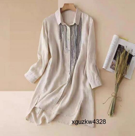 - シャツ ブラウスシャツ カジュアル 刺繍り 綿麻シャツ チュニック ゆったり 大きいサイズ 長袖 トップスM-2XL