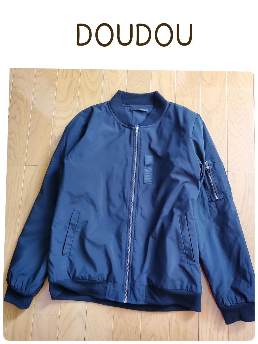 - 送料無料★DOUDOU ドゥドゥ MA1 ブラック サイズM ジップブルゾン 黒 薄手