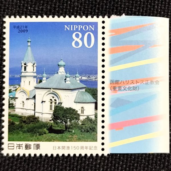 > [25040911]【日本開港150周年切手 函館】単片「函館ハリストス正教会」80円 2009年発行 美品