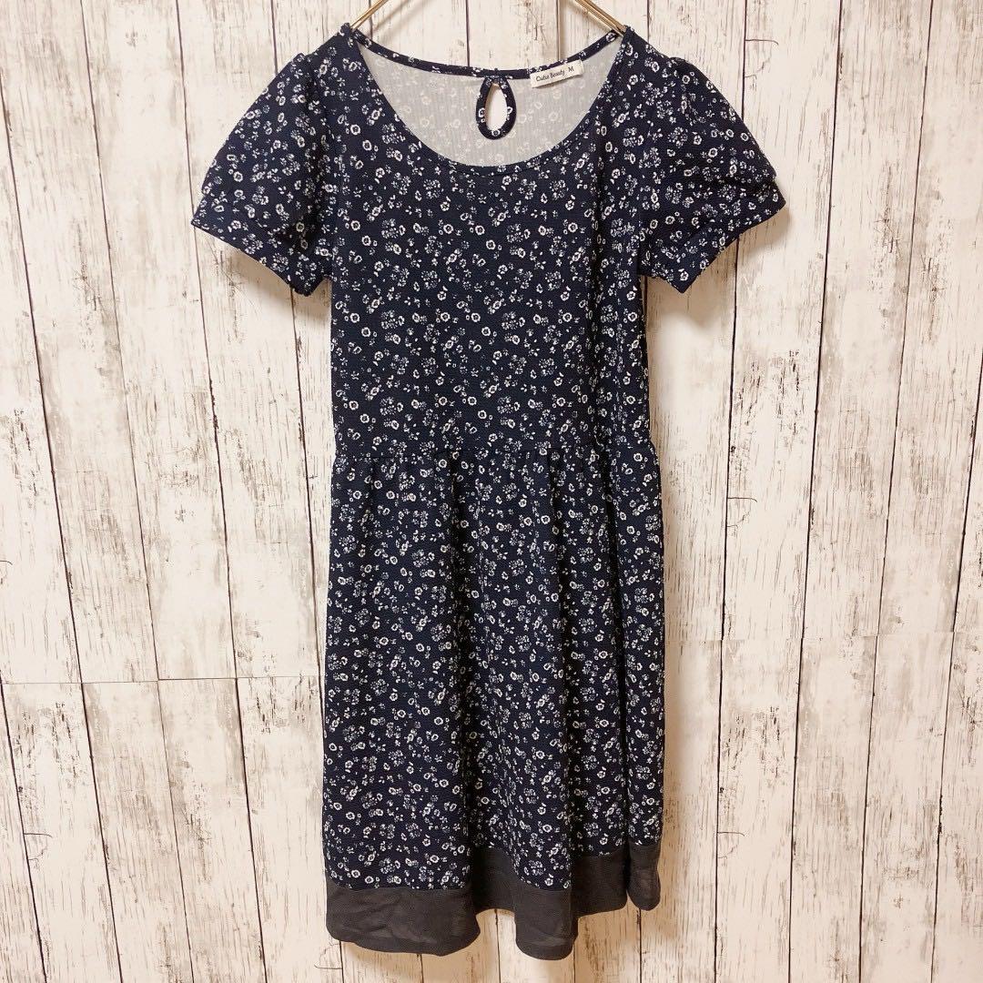 - 美品【Cutie Beauty】半袖ワンピース【M】花柄 総柄 膝丈 フェミニン