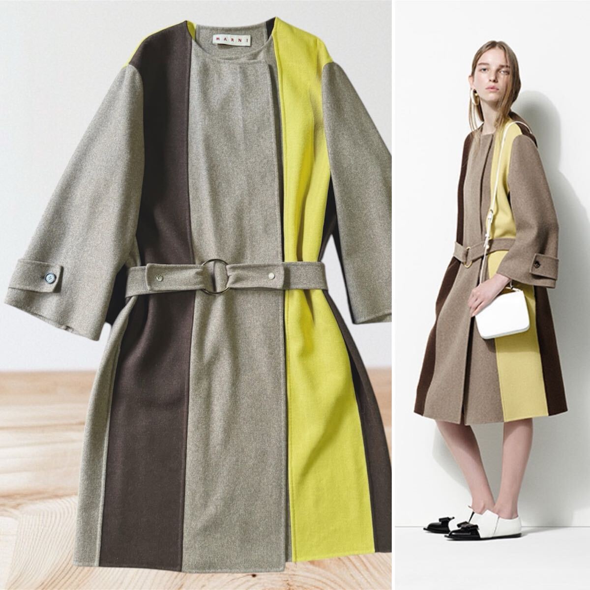 > イタリア製 マルニ marni ウールツイード パッチワークノーカラーロングコート ガウン 羽織 fudge リンネル