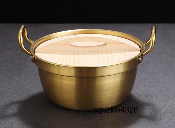 - 2点セット 限定ゴールド アウトドア 両手鍋 深型鍋 焼き鍋 1.3L 直火とHI ステンレス製 高さ 9.4cm 直径20cm キャンプ野外登山