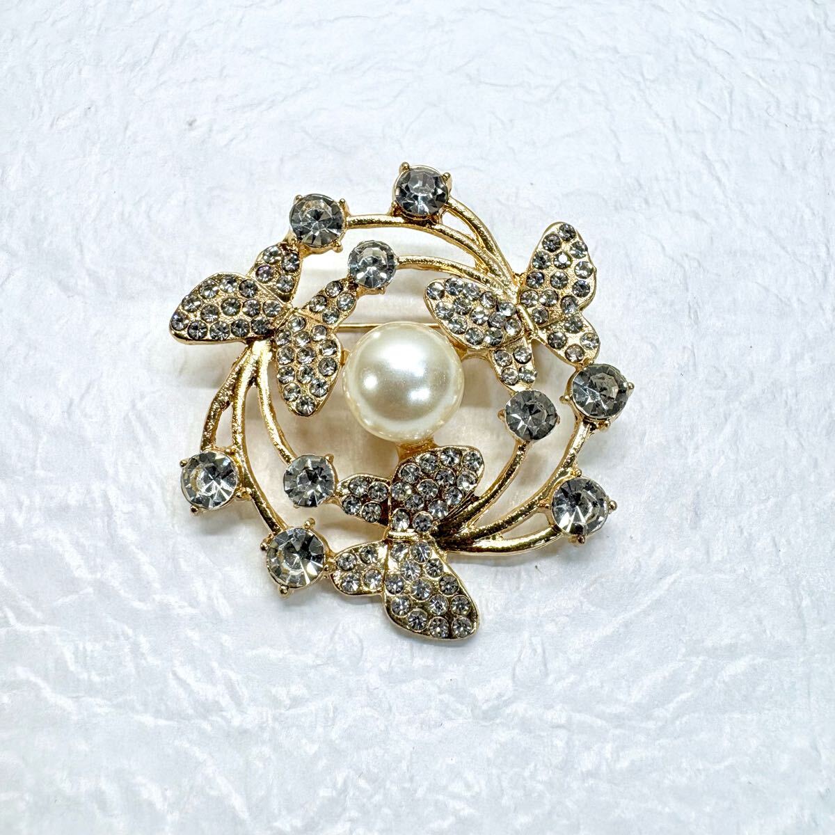 - 【ブローチ】パールと3匹の蝶々 ラインストーン リース 01-3