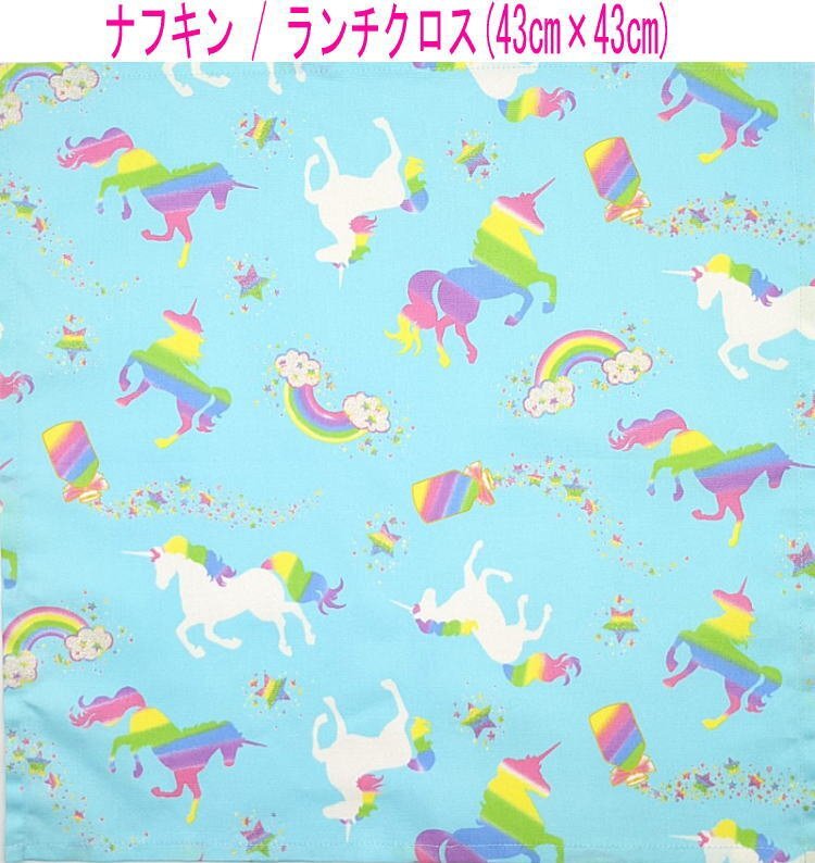 > ナフキン・ランチクロス(43cm×43cm)正方形【ユニコーン柄 ライトブルー】ランチマット ランチョンマット 日本製 レインボー ラメ ペガサス