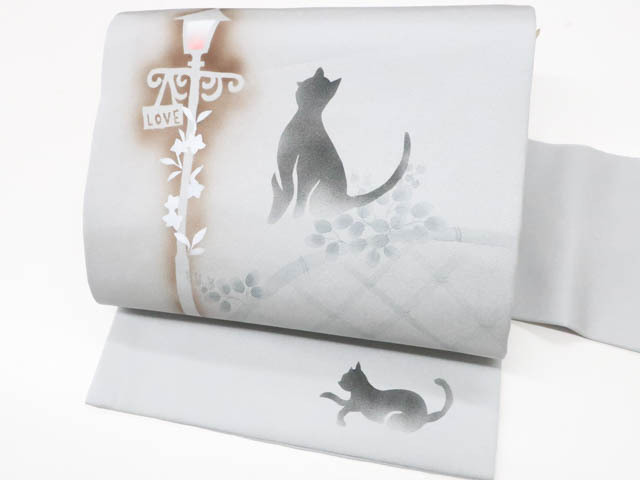 > 《古美術京松》【着物】九寸名古屋帯 オリジナル 太鼓柄 ぼかし ラメ ランプに猫文 r7b03-56