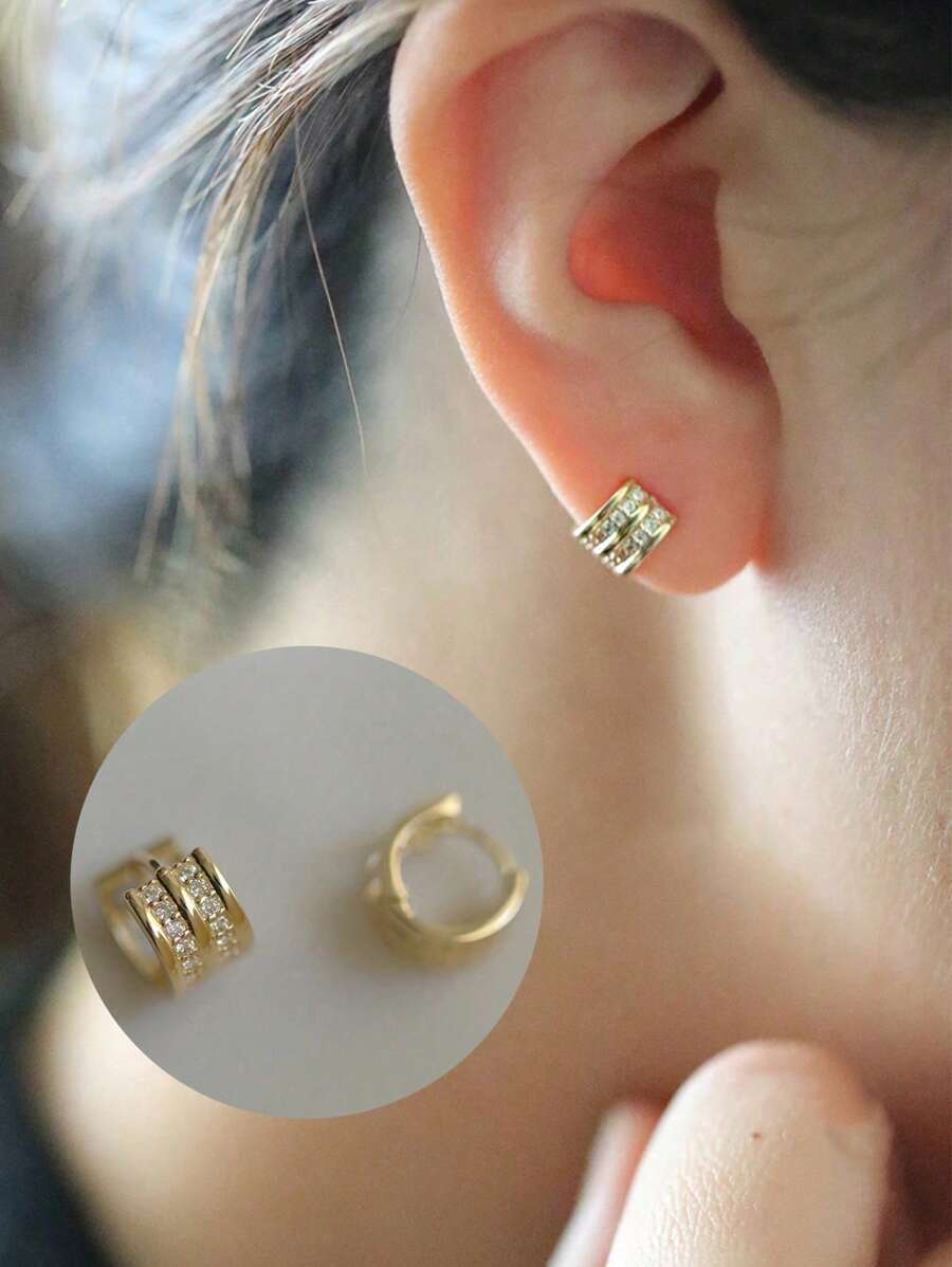 - ジュエリー レディース イヤーアクセサリー 14kゴールドダブルラウンドイヤリング S925スターリングシルバー ヴィンテージシン