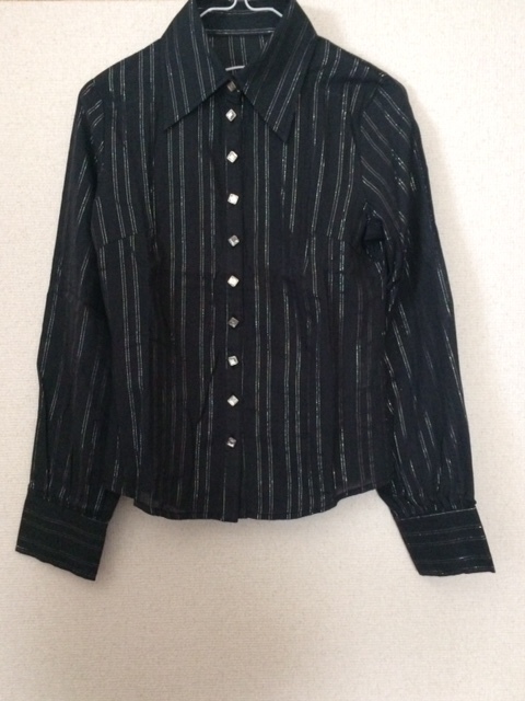 - ◆超美品◆ レトロ調 シルバーラメ ストライプシャツ 長袖 黒 ブラック 綿100%