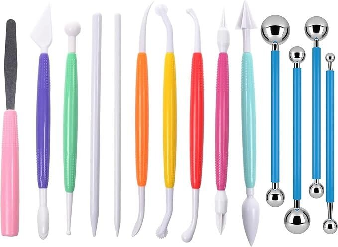 - 粘土ヘラ 造形 へら 粘土 細工 細工 クレイ 丸 棒 お手入れ用 クロス セット 陶芸 陶器用 道具 14本 セット DD0336