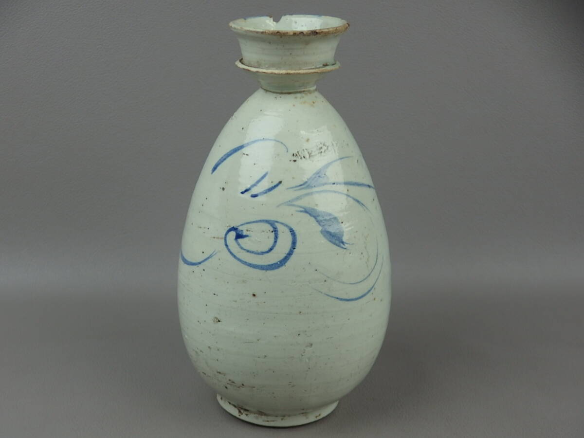 > 【骨董・茶道具】★李朝★★染付草文盤口瓶 徳利 gi087ab.7 朝鮮美術 酒器 花生 花道 華道