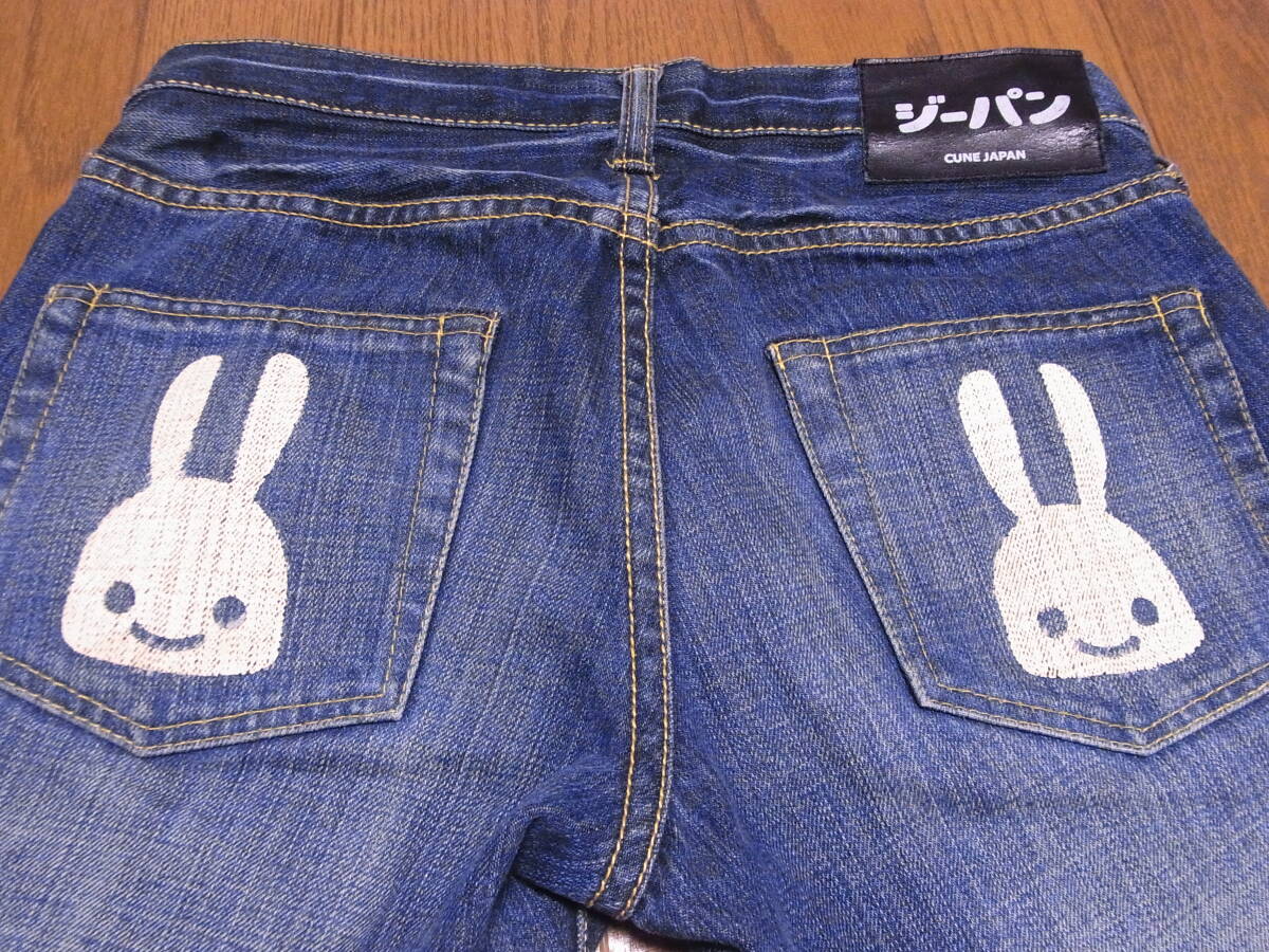- 254-85/CUNE/キューン/2連うさぎ/うさぎひげ/ユーズド加工/ローライズ/スキニー/デニムパンツ/ジーンズ/S