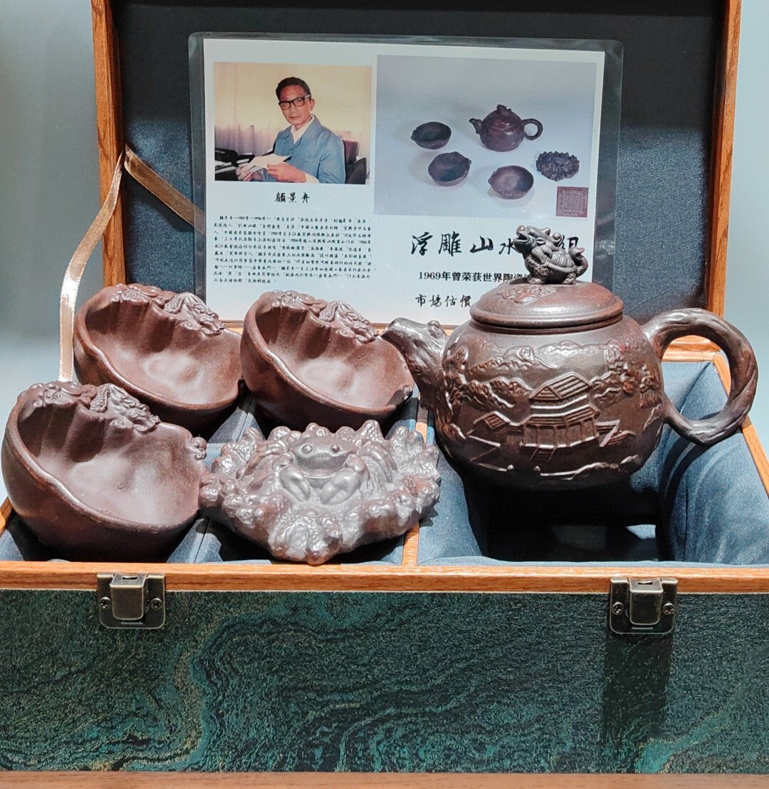 > 蔵友館蔵 古原鉱古紅泥製 浮彫山水套壺 顧景舟製款 紫砂壺 精品壺 煎茶道具 茶道具 極細工 古賞物 古美味 東洋彫刻 時代物 骨董 中国古美術