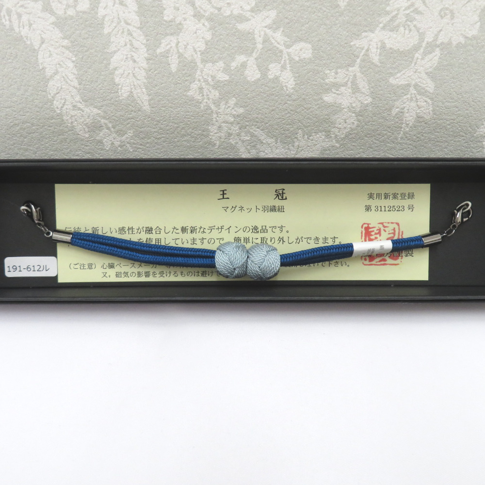 > 和小物 羽織紐 女性用 翠嵐工房謹製 王冠マグネット 絹100% 水色・ティールブルー 正絹 レディース 組紐 和装小物 小田巻 新品