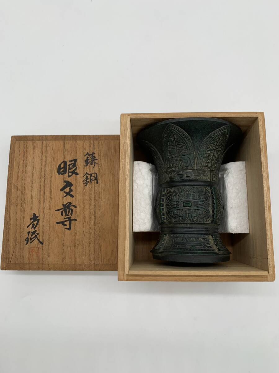 - 【美品】小林尚眠 眼文尊 青銅 中国古銅器 ペン立て 花瓶 美術品 オブジェ 置物 工芸品 花器 コレクション