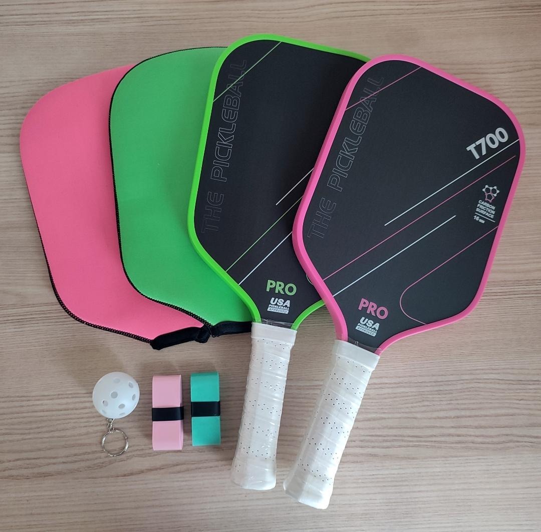 - 2個セット ピックルボール パドル T700生カーボン ピンク 緑色 カバー付き