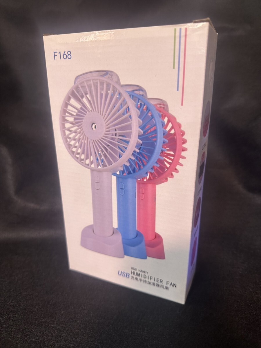 > B5 新品未使用 USB HUMIDIFIER F168 手持ち 扇風機 携帯扇風機 USB充電 3段 風量調整 ハンディー コンパクト 軽量 デスクファン ポータブル