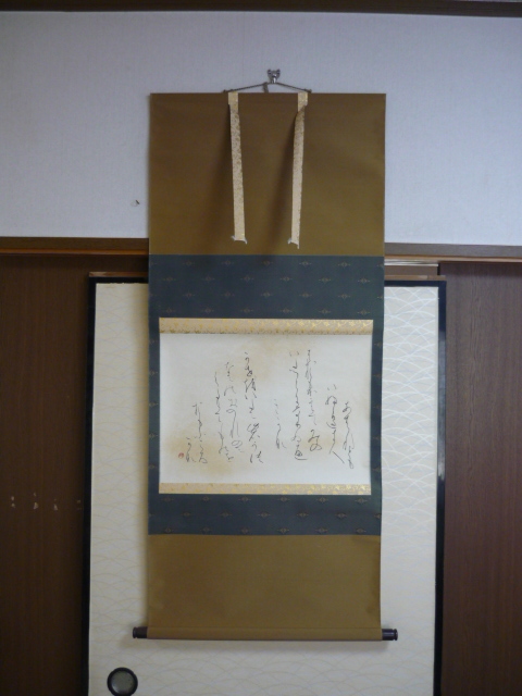 - 【模写】 掛軸 端石? 和歌が二首 紙本 大きさ全体約127x54cm 紙本部分約35x48cm