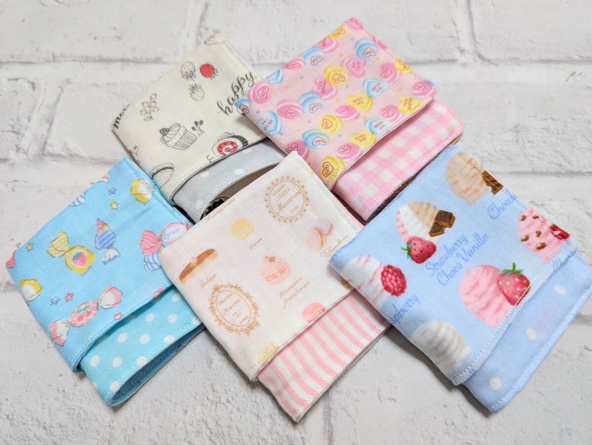 - *ハンドメイド*ダブルガーゼハンカチ*5枚セット*約16×16㎝*スイーツ柄* 入園 入学* 新学期準備*