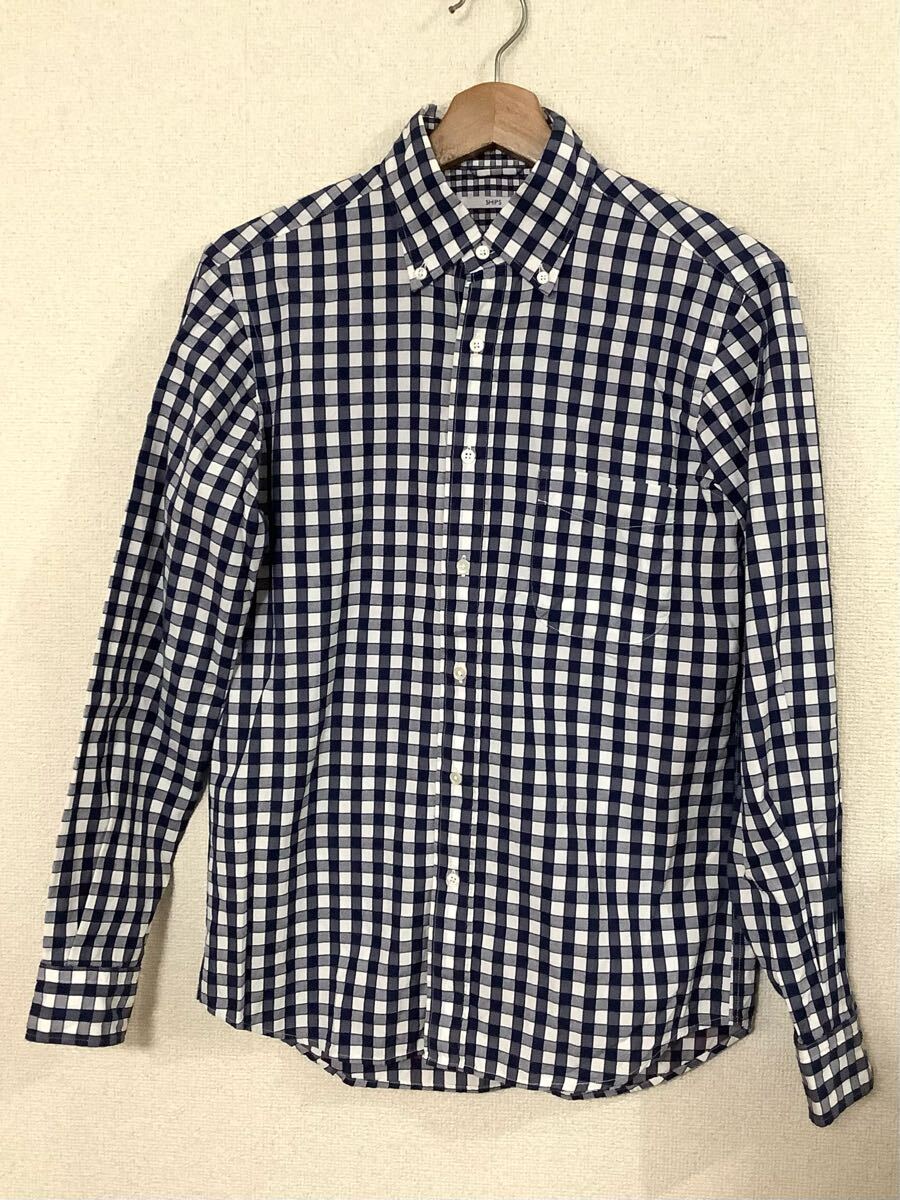 - SHIPS シップス チェック柄 ボタンダウンシャツ カジュアル セレクト ブルー メンズ 古着 S