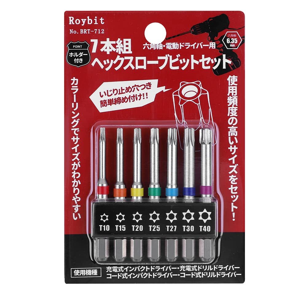 - 【特価セール】7本組 トルクスネジ用ビット 65mm 片頭トルクス 六角軸 6.35mm XMSSAA 磁気ドライバービットセット