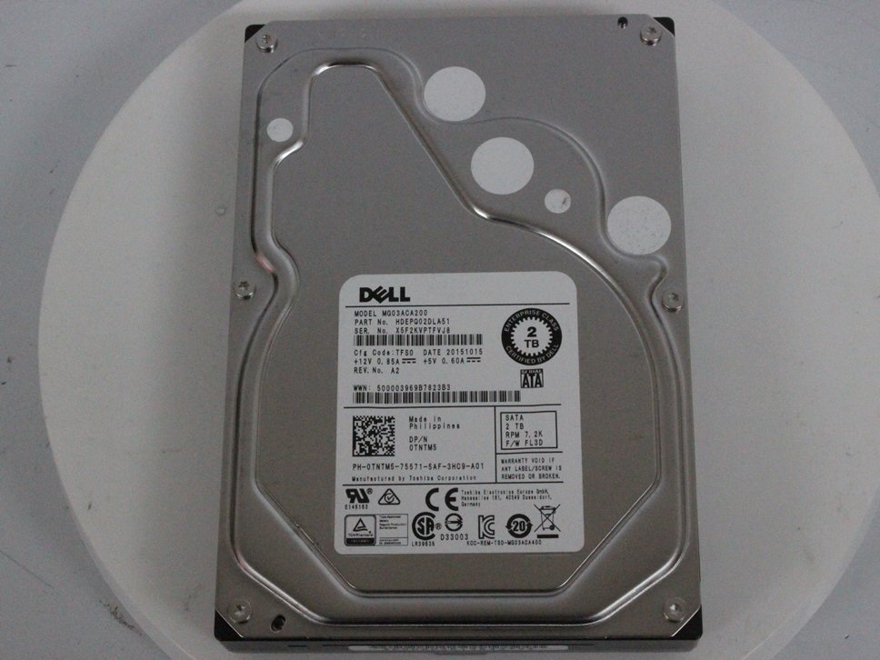> 中古品 DELL mg03aca200 2tb 7200RPM 64MBキャッシュ SATA 6.0GB ハードディスク HDD 動作確認済み