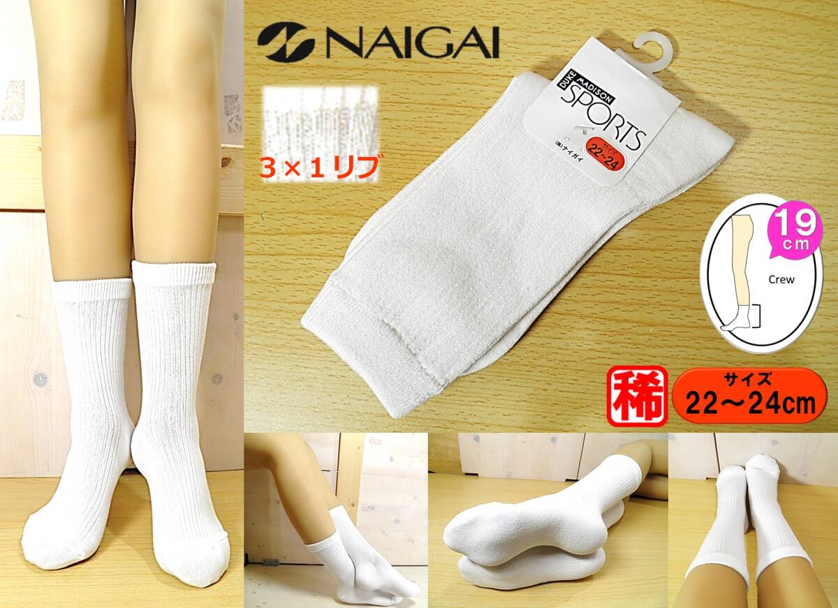 - 【レッグウェア★未使用品】NAGAI◆DUKE MADISON◆白リブ クルーソックス◆3×1リブ◆22-24cm◆19cm丈◆スクールソックス◆