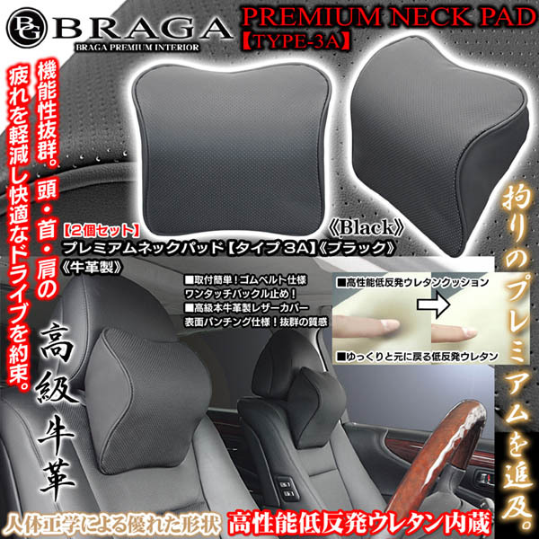 - 《ダイハツ車》タイプ3A プレミアムネックパッド/ブラック2個セット/低反発ウレタン内蔵/牛革調PVCパンチング/ブラガ