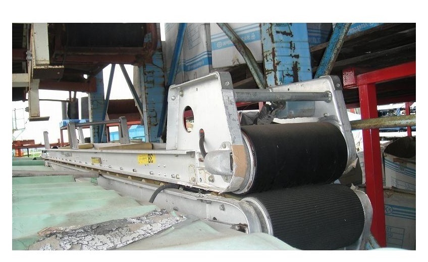 - c3A【棚山イ大沼29825-5有】アルミフレーム 米など用 33cm全巾位 3.8m長さ 200V ベルト平コンベアー 正常品