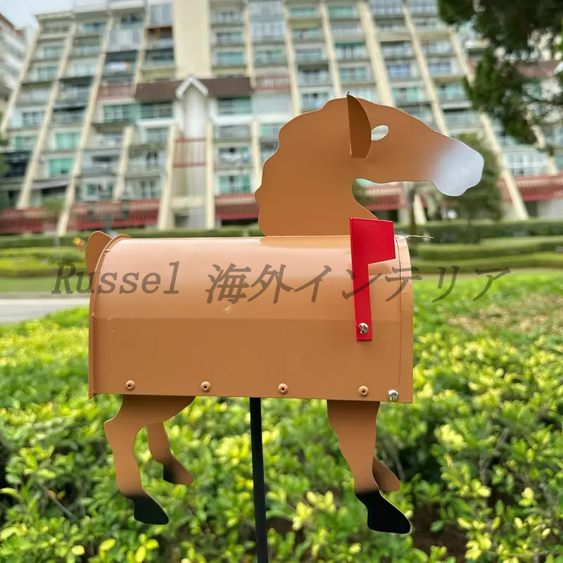 - ポスト 馬 郵便受け モダン 耐久性がある 金属製 素朴 ブラウン ヴィンテージ調 かわいい うま アニマル ユニーク ホームデコ アイアン 4-7