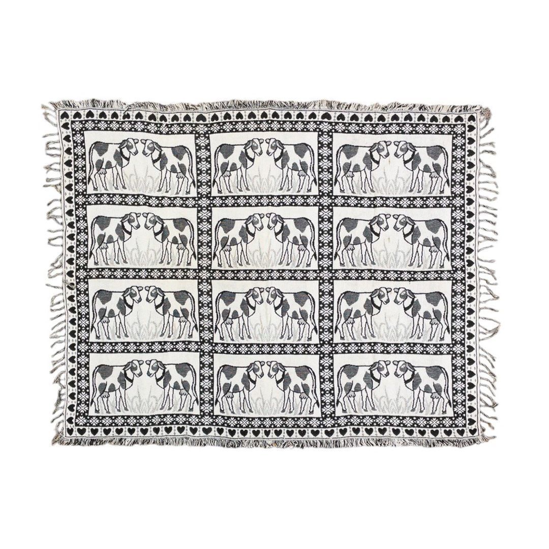 - vintageラグ カーペット 牛 モノクロ アニマル 1271
