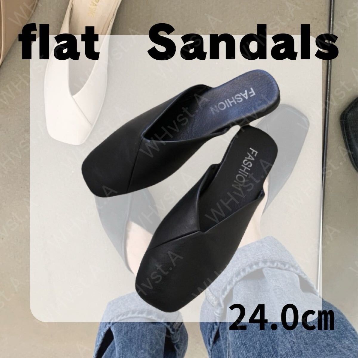 - フラットシューズ フラット サンダル 携帯スリッパ 軽い 疲れにくい 上品 楽ちん 参観 オフィス 黒 24.0