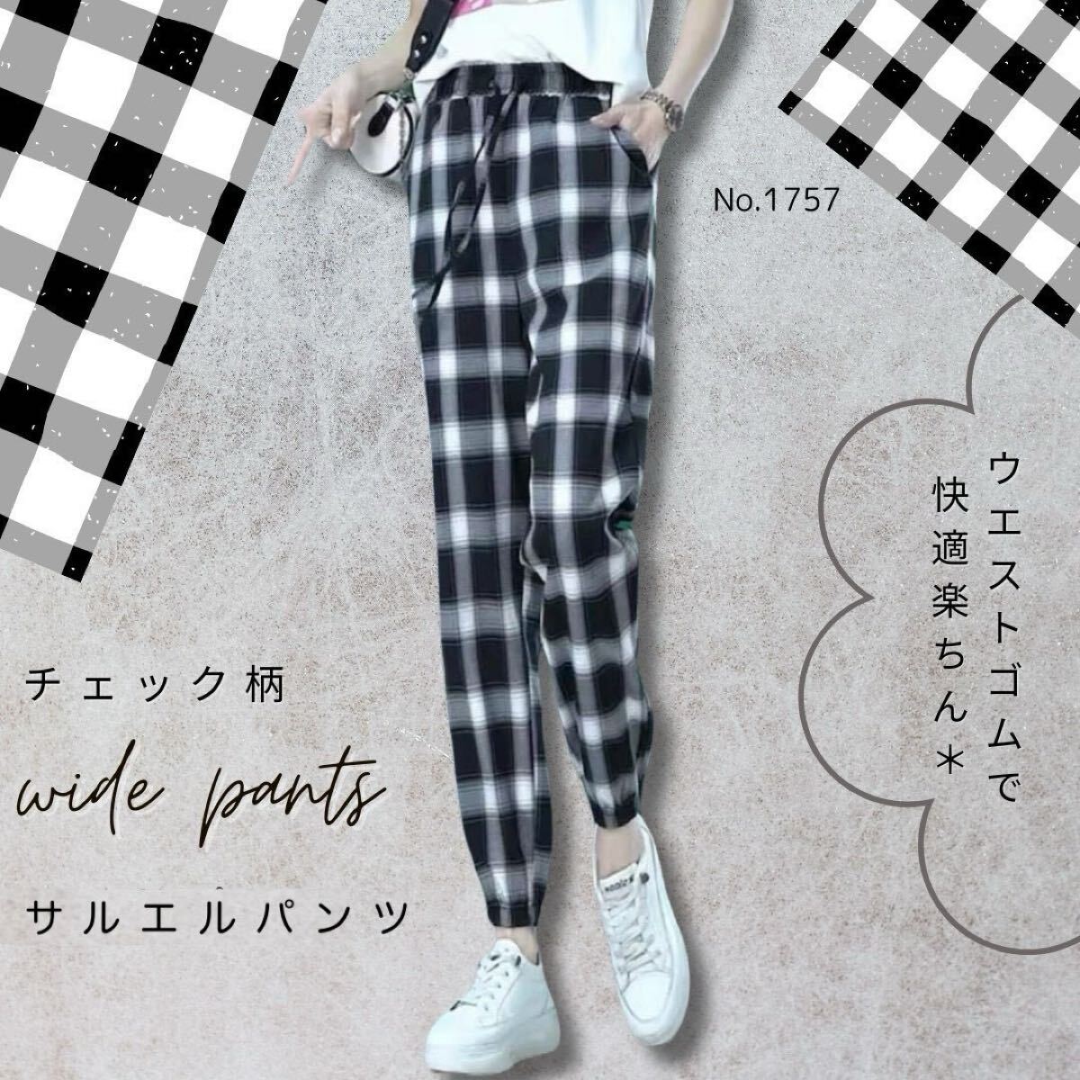 - サルエルパンツ チェック柄 ジョガーパンツ リラックスパンツ ワイド