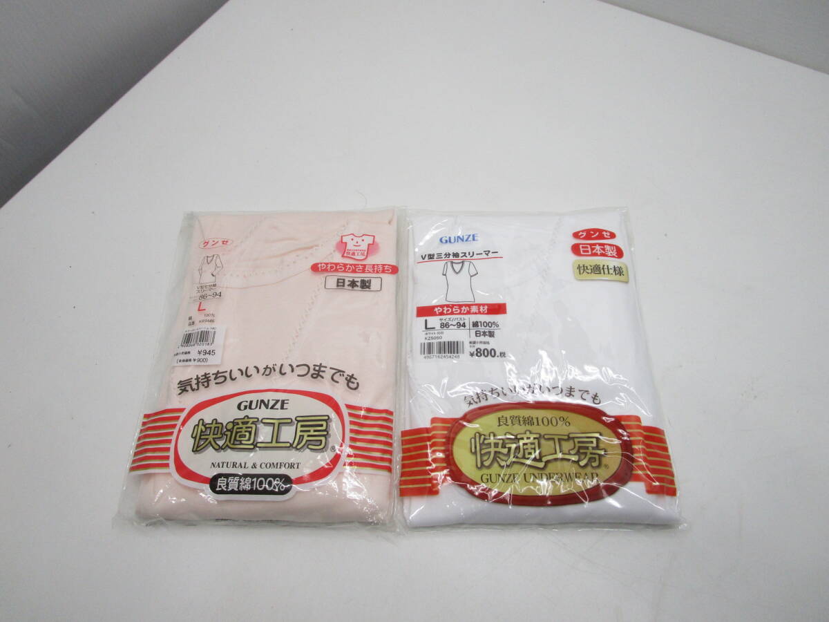 - O909★快適工房 やわらか清潔 婦人用 Lサイズ V型三分袖&七分袖スリーマー 2枚セット 綿100% ★未開封品