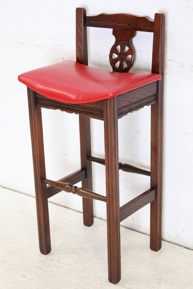 > 【希少】パブスツール Old Charm オールドチャーム|イギリス製 ビンテージ オーク カウンタースツール|1980年代製・生地張替済 レトロ