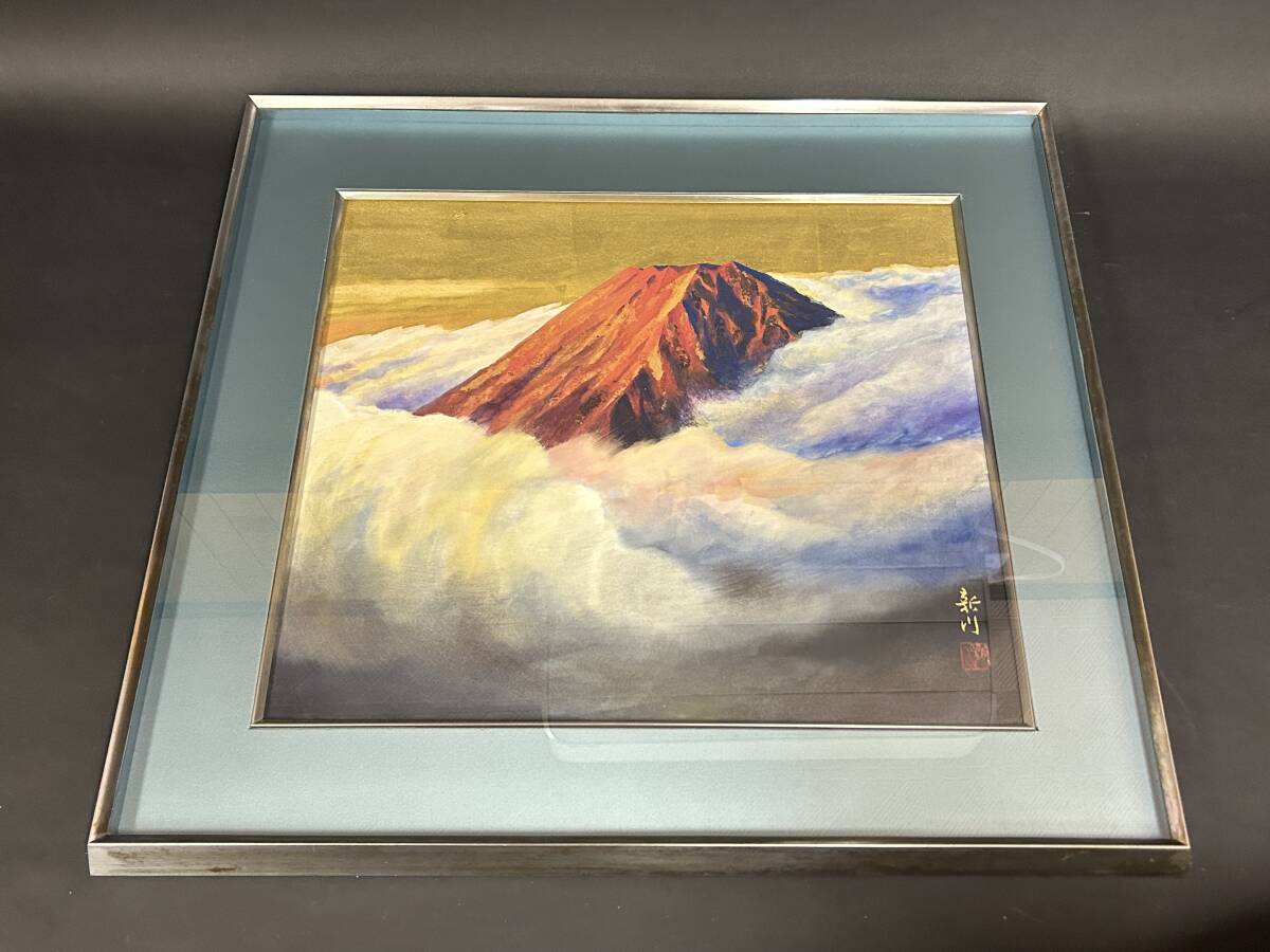- 真作 日本画 西野新川 「雲海紅富士」 10号?