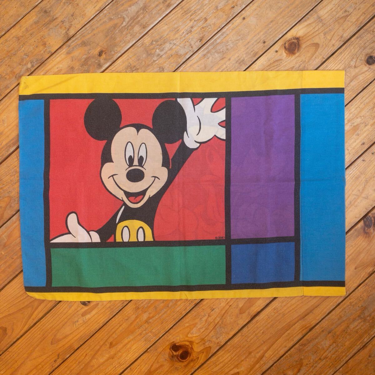 > USA ヴィンテージ ピローケース Disney 枕カバー リメイク生地 ミッキー マルチカラー 袋状両面プリント アメリカ仕入 B2580
