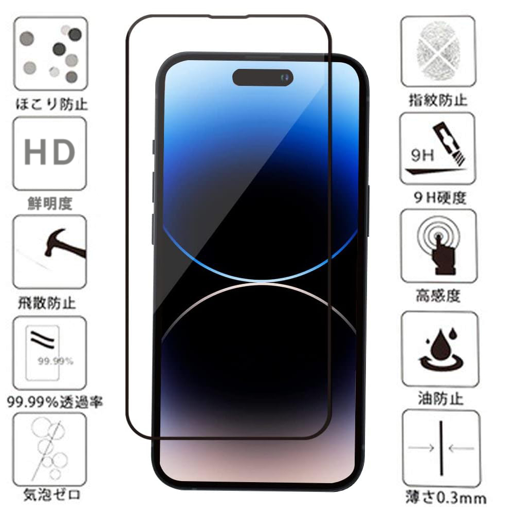 - 黒 iPhone 14 Pro ガラス フィルム アイフォン 衝撃吸収 画面 保護 液晶 カバー シート シール スクリーン Glass Film 9H アップル apple