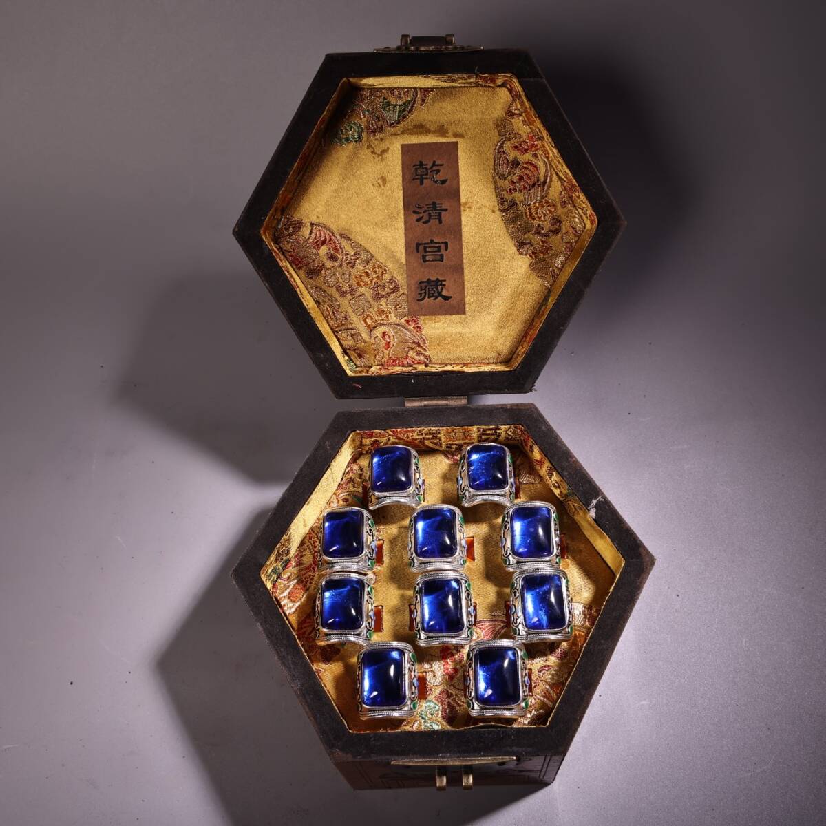 - 清 宮廷御製 古宝石彫 藍宝石指輪 指環 漆器盒 箱付 極細工 東洋彫刻 骨董品 古賞物 中国古玩 中国古美術