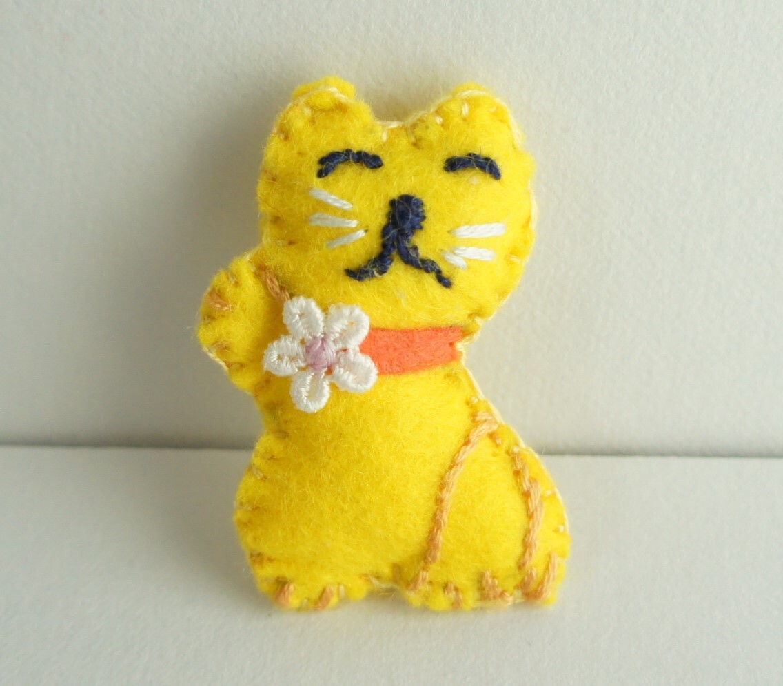 - ♪ ハンドメイド ブローチ 猫 ねこ フェルト ケミカルモチーフ 綿入り