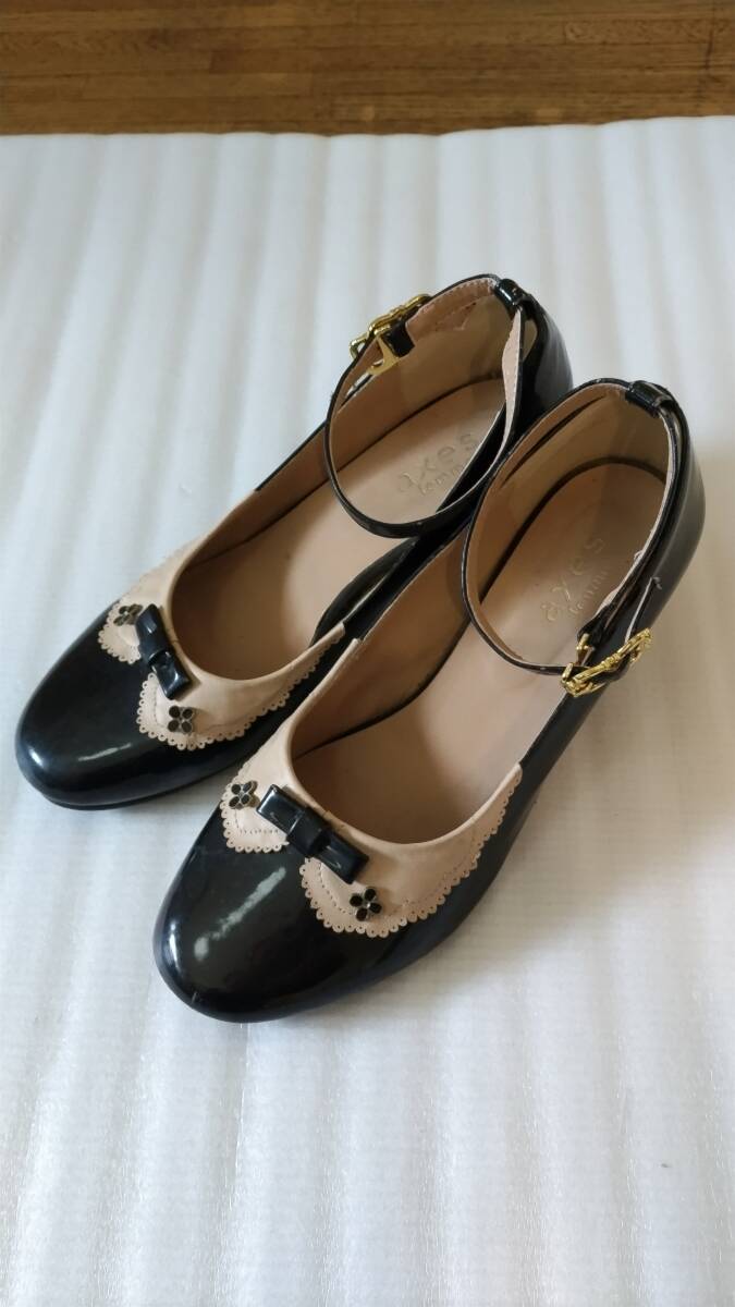 - No.2661_アクシーズファム_黒エナメルストラップリボンパンプス