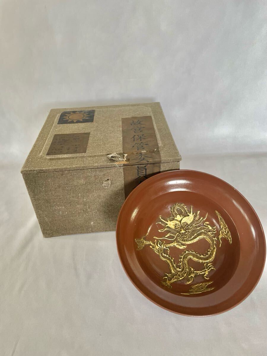 - 【故宮】五爪金彩龍鉢 故宮保安委員会 大清乾隆年製 高さ7口径7.6高台径6.8cm 共箱 中国 古玩骨董 北平古物陳列所重慶 陶器皿k2-029 3m
