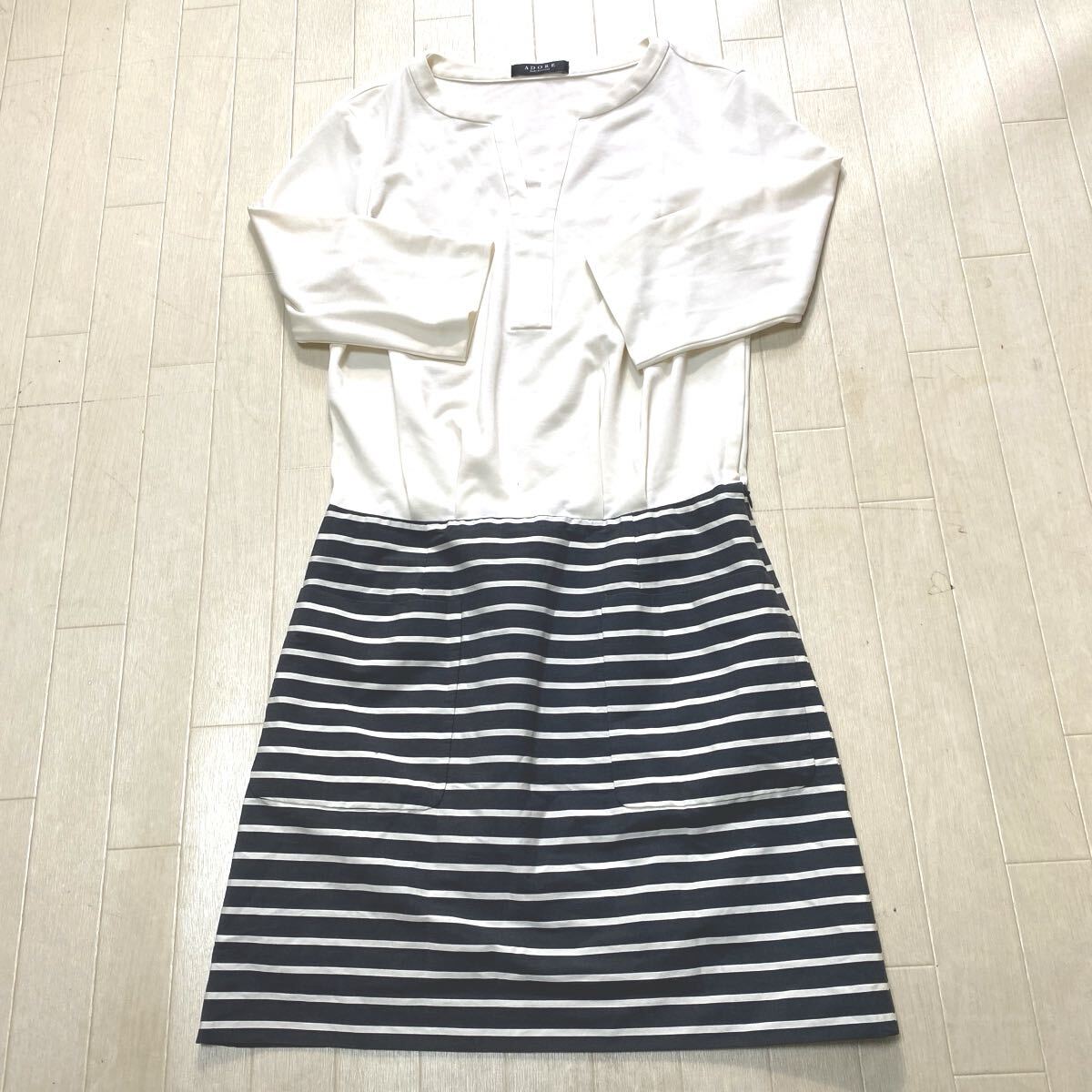 - O20☆ ADORE アドーア トップス 長袖ワンピース レディース 38 ホワイト ブラックボーダー柄