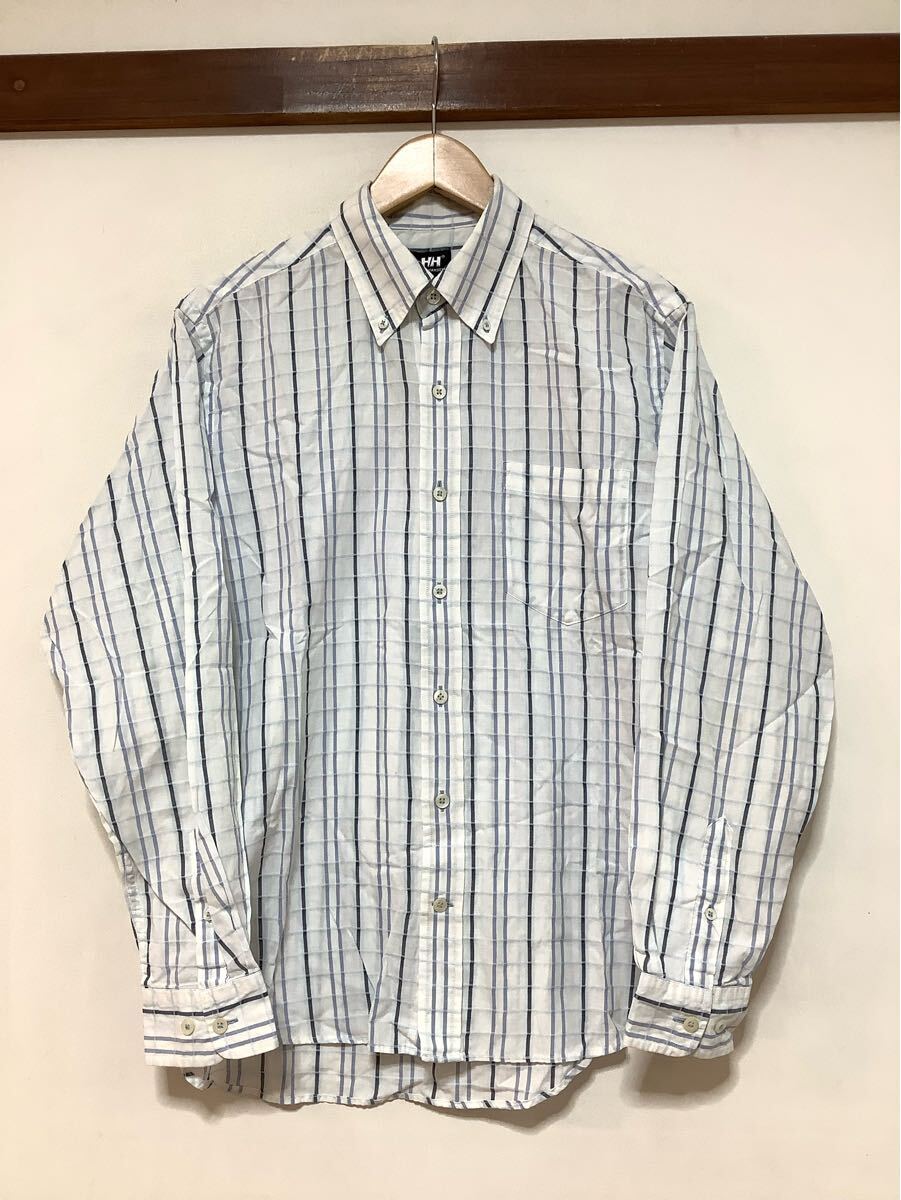 > わ1503 HELLY HANSEN ヘリーハンセン チェック 長袖シャツ M ボタンダウンシャツ ホワイト HZ46104