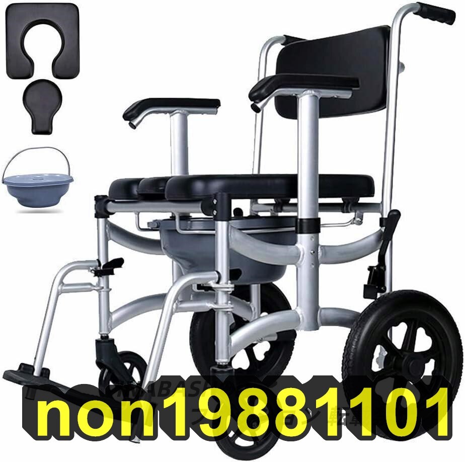 - シャワーチェア 折りたたみ アルミ製 軽量 入浴用車椅子 U型座面 介護用防水 ノ一パンクタイヤ 便器付お風呂椅子 転倒防止 高齢者敬老の日