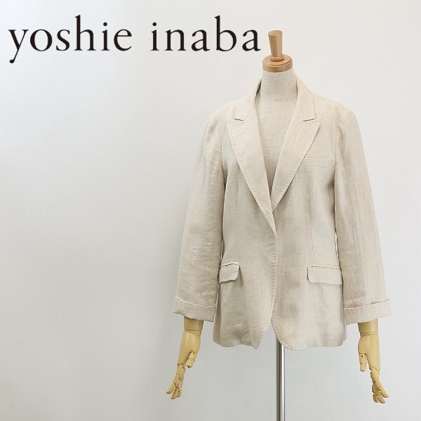 - ◆yoshie inaba ヨシエイナバ リネン100% ヘリンボーン柄 ジャケット アイボリー 9