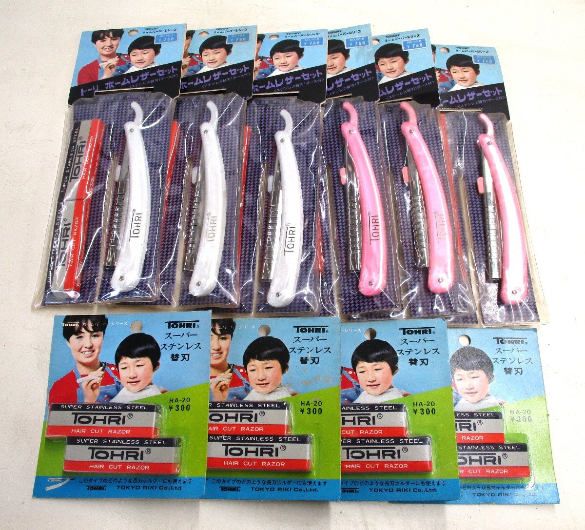 > ★ 100052 トーリホーム レザーセット 6組 TOKYO RIKI NO.50-B/HA-20 ステンレス替刃付 4組 ピンク/ホワイト 未使用 長期保管品 ★