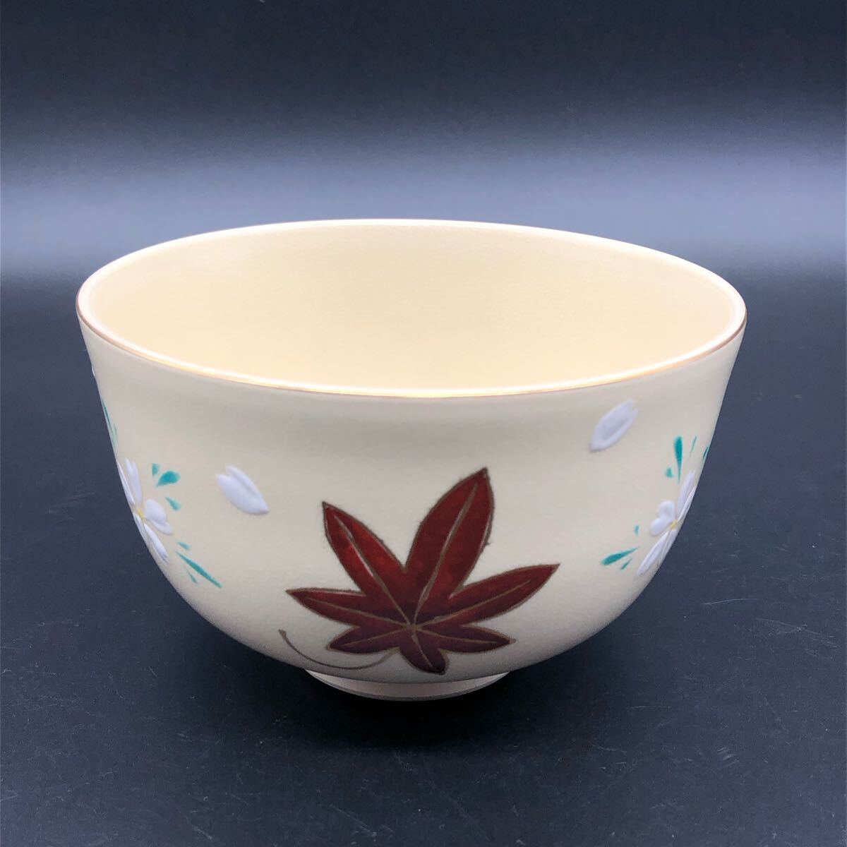 - 清水焼 紅葉 茶碗 抹茶碗 茶道具 茶器 陶器 イ15-7