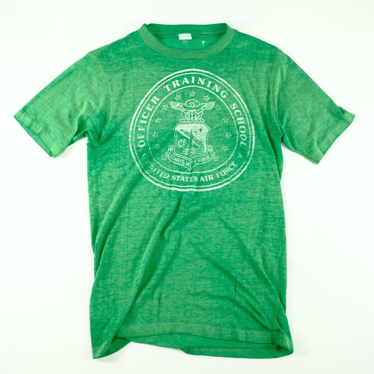- 1970〜80s ビンテージ ボロTシャツ 襤褸 ダメージ アメリカ軍 USA製 フェード ヴィンテージ 半袖Tシャツ グリーン 緑