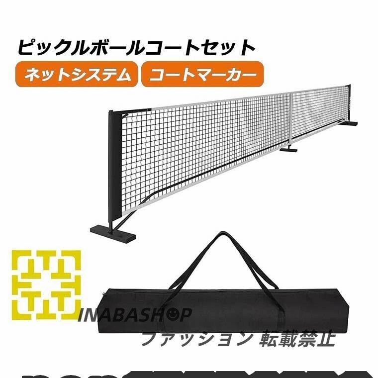 - ピックルボールネットセット ポータブルネットシステム 公式サイズ キャリングバッグ コートマーカー付き 簡単組み立て 持ち運び便利