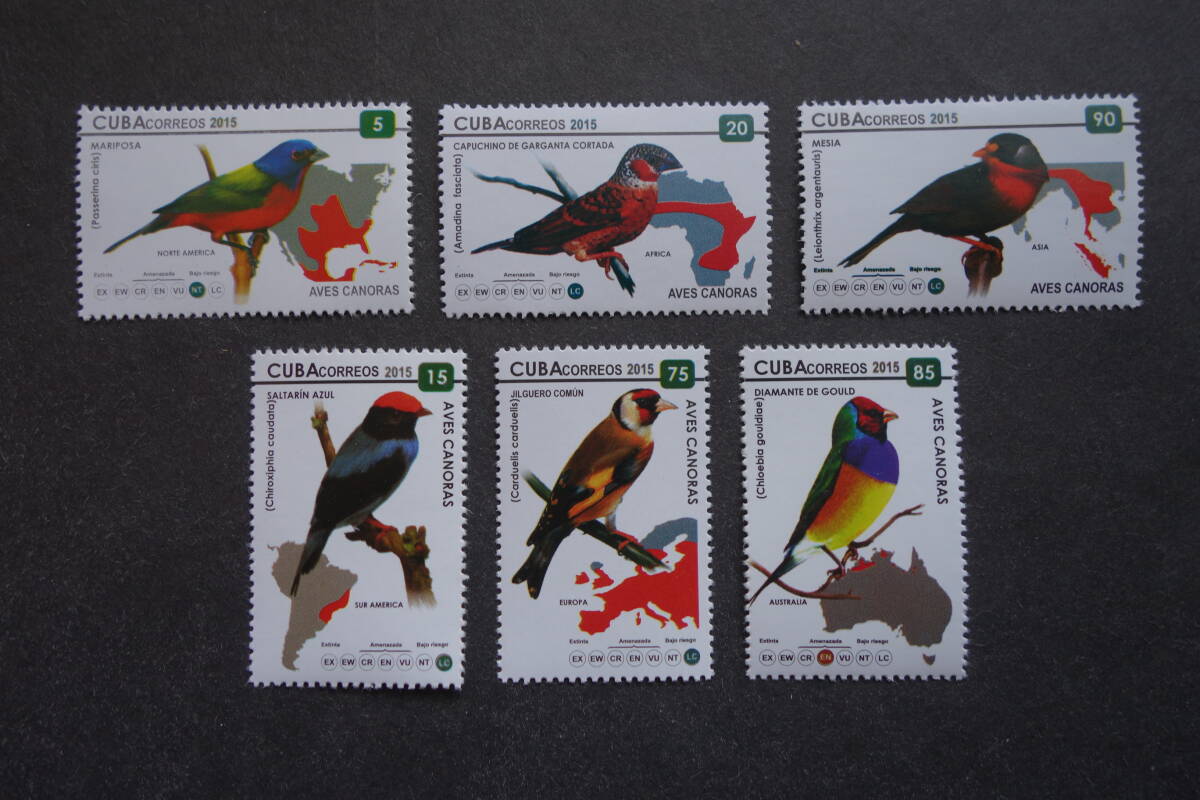 - 外国切手: キューバ切手 「鳴鳥」(ゴシキノジコ ほか)6種完 未使用