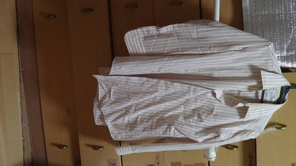 - 即決 長袖シャツ 紳士服 ピエールバルマン Pierre Balmain アンティークゴールド+白色 ボタン6個 古着 価値不明